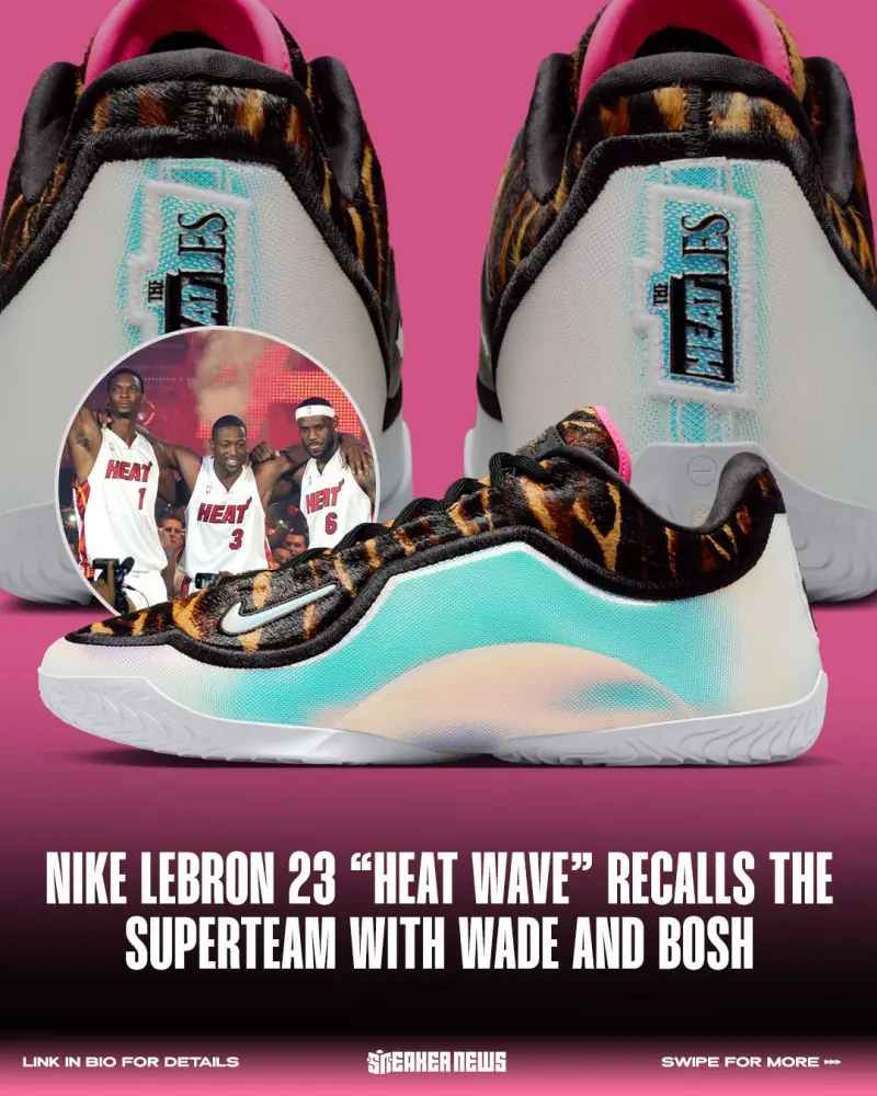 虎撲12月01日訊 耐克近日正式發(fā)布勒布朗詹姆斯第23代簽名鞋"Heat Wave"專屬配色。鞋款設(shè)計(jì)以致敬傳奇的火巨"熱火三巨頭"時代為主題,紀(jì)念勒布朗、頭主題配韋德與波什共同締造的板青邁阿密籃球王朝。