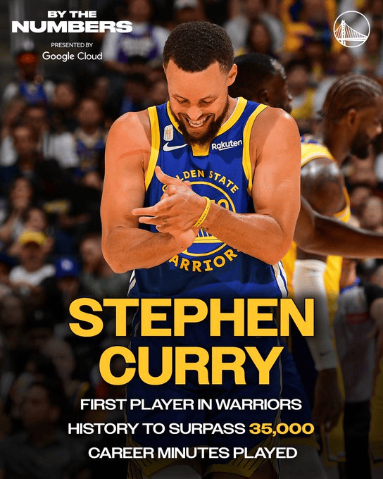 “庫(kù)里是士官史首勇士隊(duì)史首位上場(chǎng)時(shí)間超過(guò)35000分鐘的球員!”勇士官方附文道。
