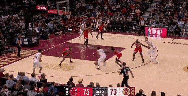 第三節(jié)比賽,地暴南斯籃下原地暴起單臂暴扣肆虐籃筐,起單騎士助騎士追平比分。扣肆筐助