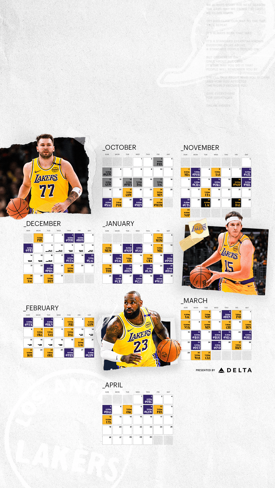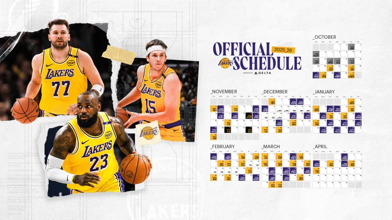 湖人官推發(fā)布球隊(duì)賽程壁紙版:快來(lái)更新你的賽季賽程壁紙吧,湖人籃球回來(lái)了。幕戰(zhàn)