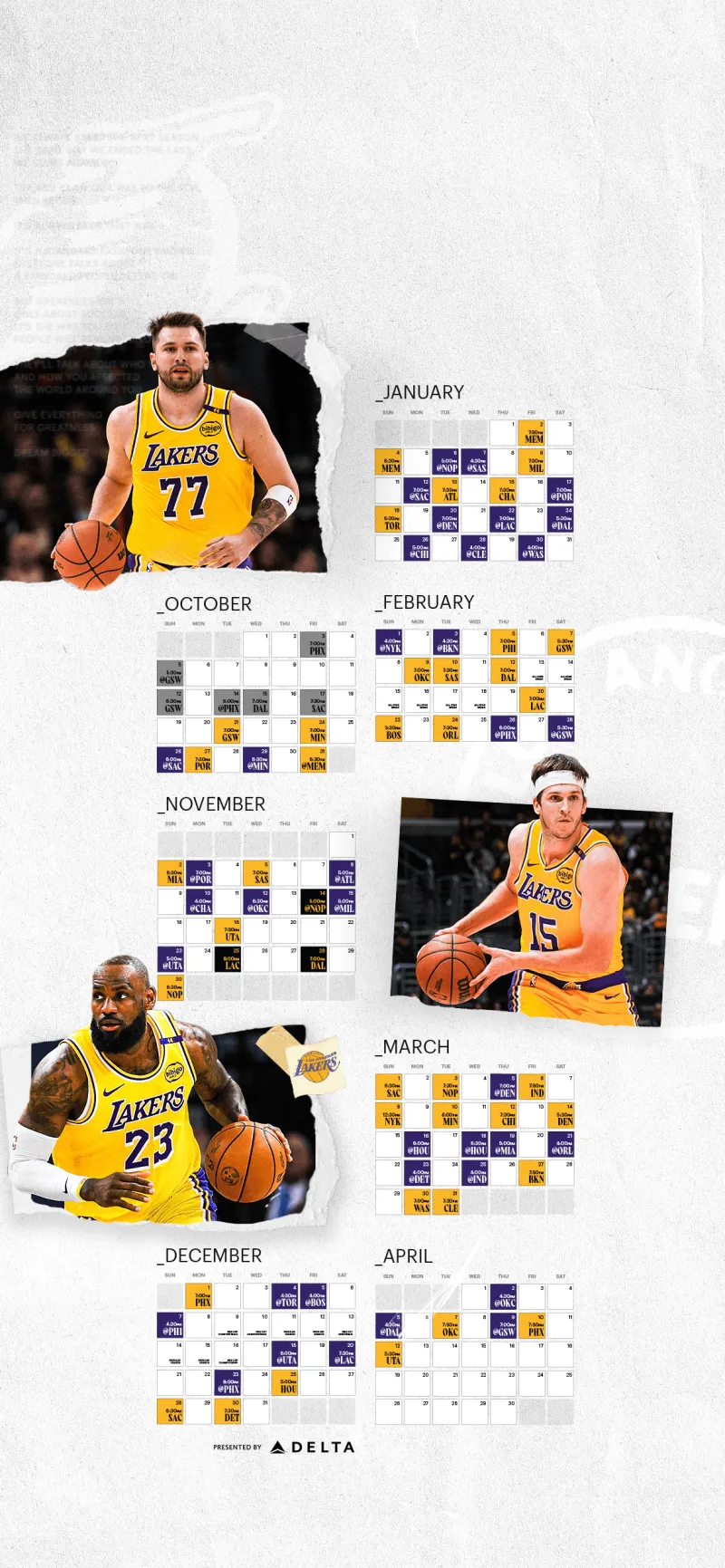 湖人官推發(fā)布球隊(duì)賽程壁紙版:快來(lái)更新你的人官日揭壁紙吧,湖人籃球回來(lái)了。賽季賽程