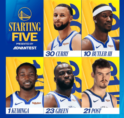 [流言板]勇士首發(fā):庫里、巴特勒、庫明加、格林、波斯特