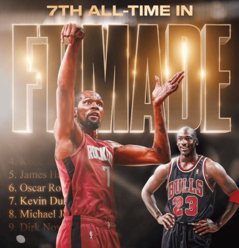 [流言板]杜蘭特生涯命中罰球數(shù)7329次,超越喬丹來到NBA歷史第7位
