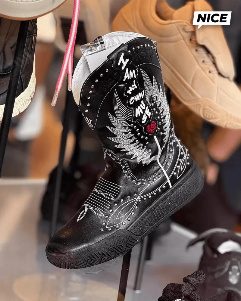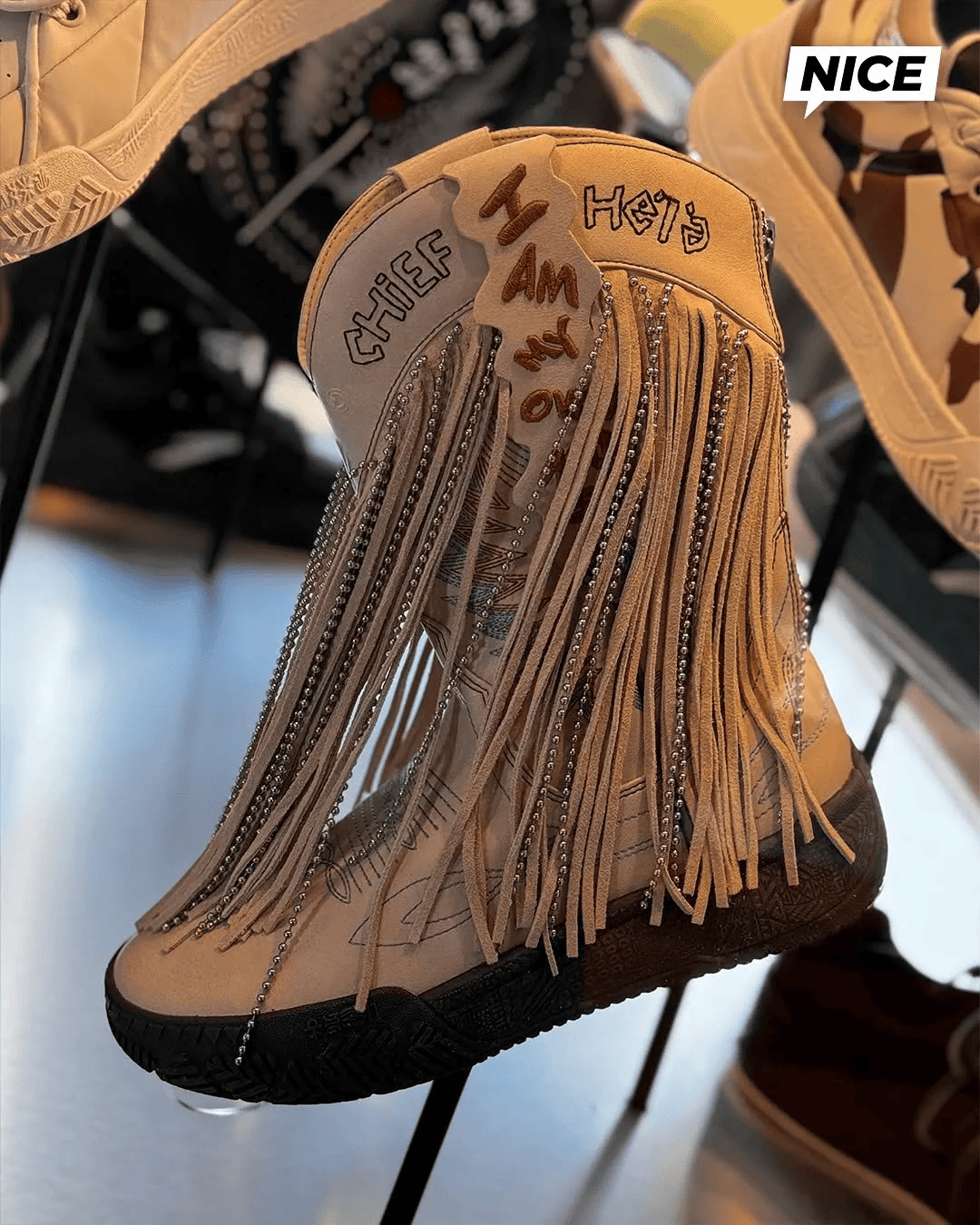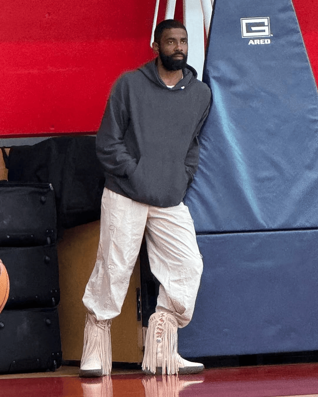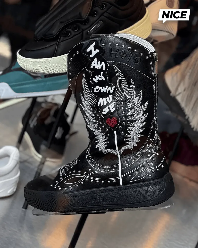 虎撲10月04日訊 今日,安踏品牌代言人、州牛仔凱獨行俠隊球員凱里-歐文穿著品牌基于休閑板鞋Hélà Code打造的流言里Chief Hélà牛仔靴現(xiàn)身球隊訓(xùn)練館。