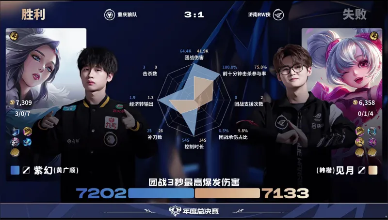 虎撲10月07日訊 狼隊/RW俠第四局?jǐn)?shù)據(jù)對比:狼隊雙邊近乎全包圍對位