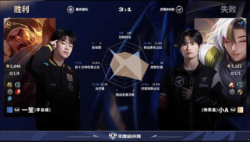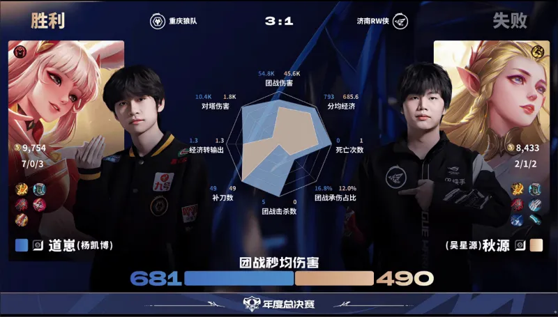[流言板]狼隊/RW俠第四局?jǐn)?shù)據(jù)對比:狼隊雙邊近乎全包圍對位