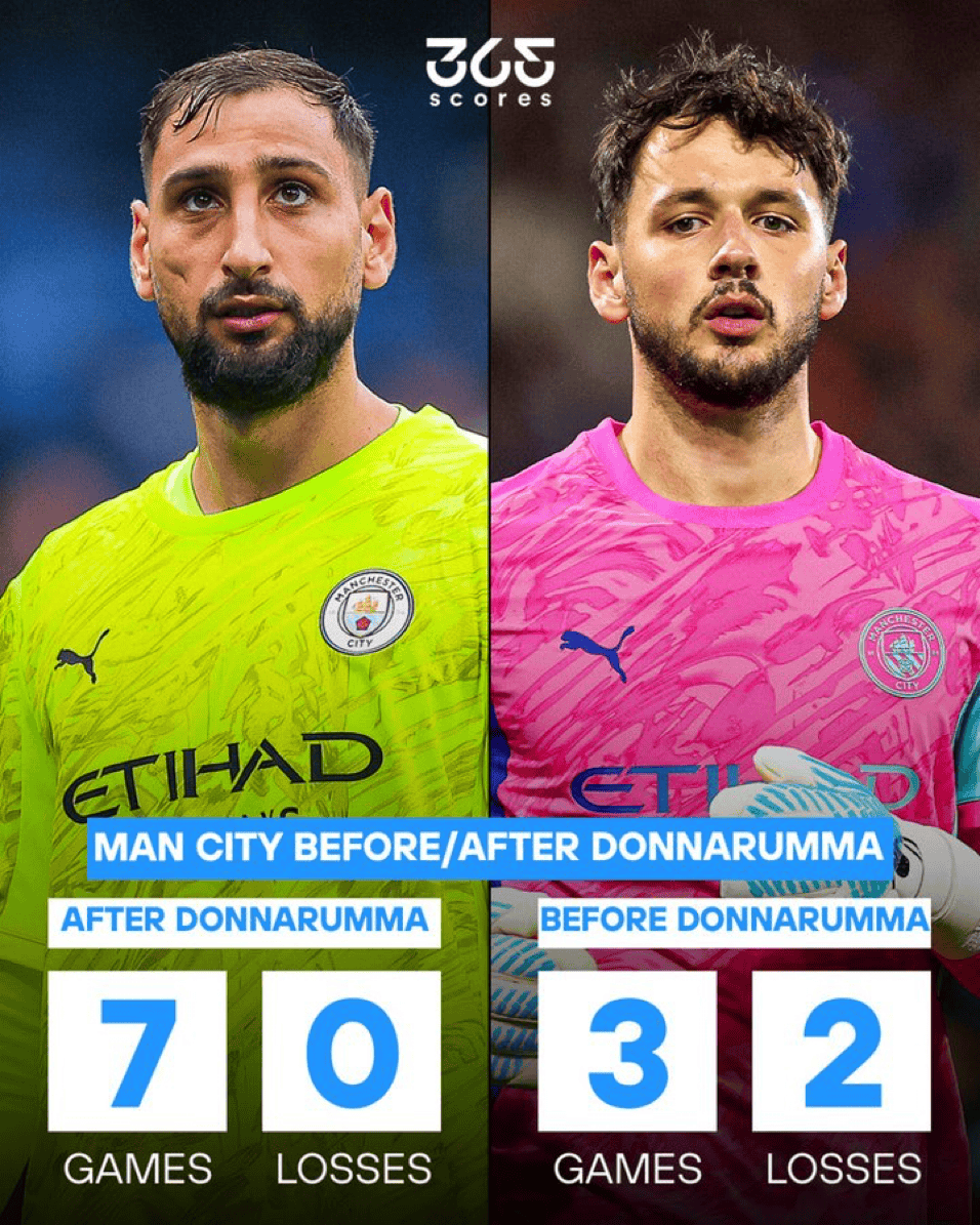 虎撲10月08日訊 根據(jù)365Scores的統(tǒng)計(jì),曼城自從簽下多納魯馬之后就一直保持不敗,期間球隊(duì)這位意大利門將是還沒否能讓曼城的防守重拾信心?