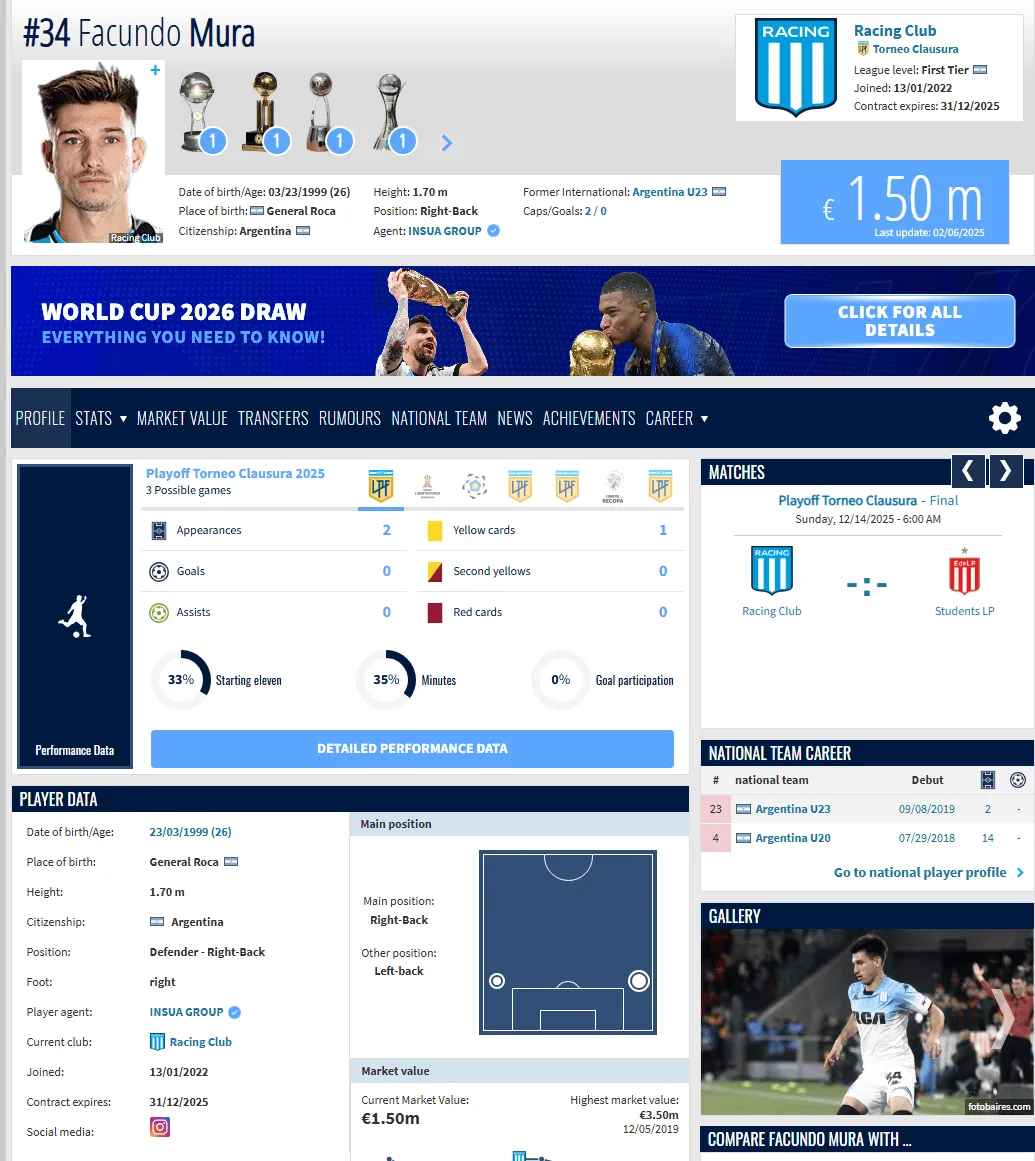 阿根廷競(jìng)技隊(duì)右后衛(wèi)法昆多-穆拉即將加盟邁阿密國(guó)際——這筆交易很快就會(huì)正式完成。阿根