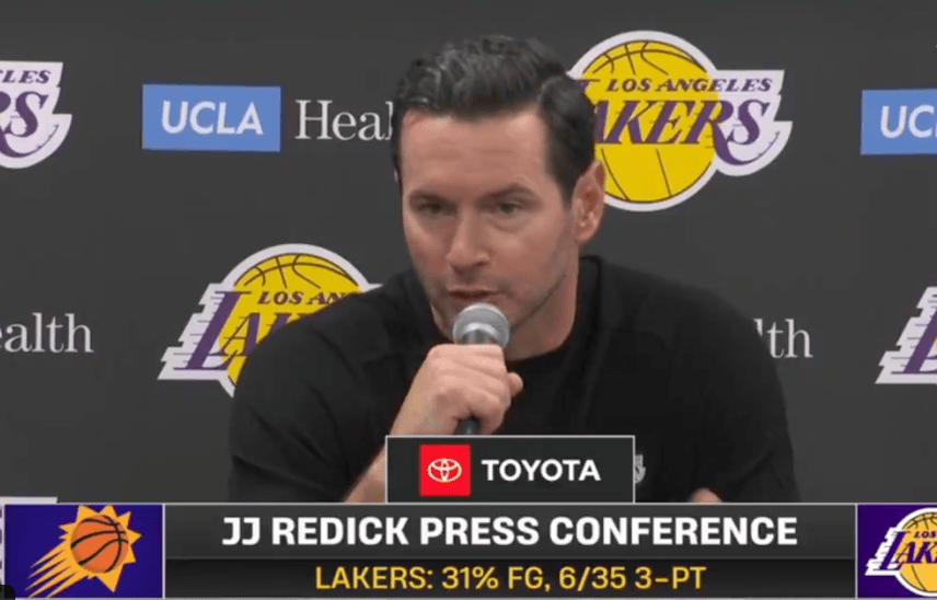 賽后,湖人主教練JJ-雷迪克接受采訪,談起了球隊(duì)本場(chǎng)輸球的話題。