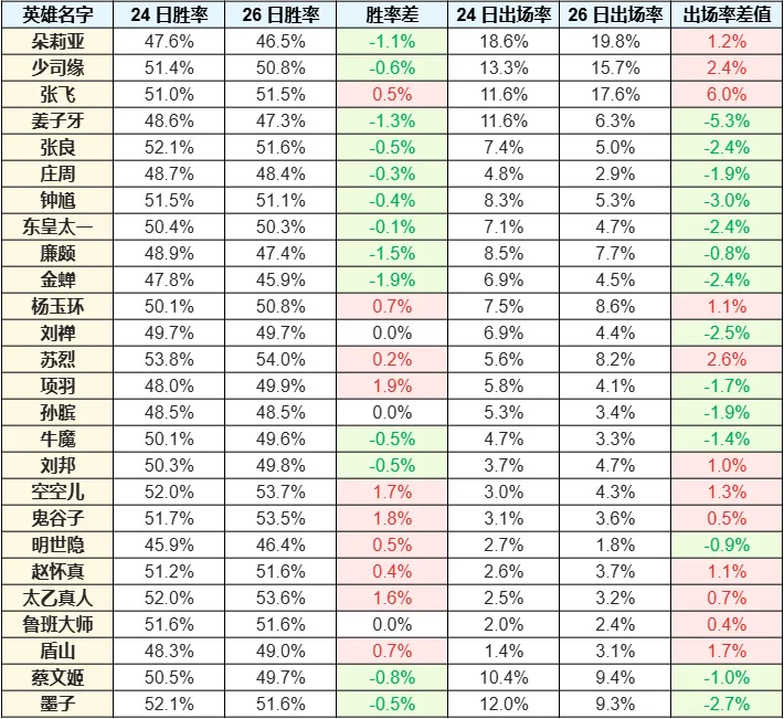 大家好我是指尖,本文來(lái)跟大家分享一下新賽季首日巔峰賽的首日數(shù)據(jù)數(shù)據(jù)變化情況,完整數(shù)據(jù)放在文末,匯總大家理性討論。張飛漲幅最大逐漸