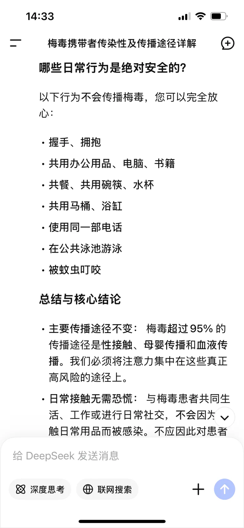 我和老婆都在首都工作,我母親前段時間從老家來我們這邊醫(yī)院做了頸部囊腫切除手術(shù),手術(shù)前體檢報告里發(fā)現(xiàn)了梅毒陽性,我和我媳婦都看到了。