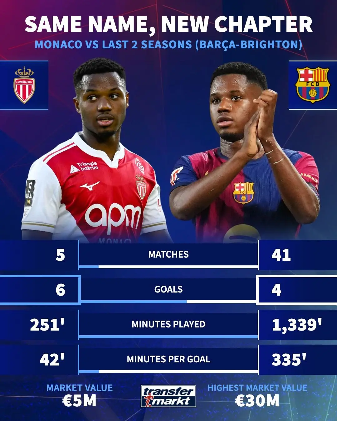 本賽季法蒂被巴塞羅那外租至法甲球隊(duì)摩納哥,寄予己法目前各項(xiàng)賽事登場5次已斬獲6粒進(jìn)球,厚望已經(jīng)超過他此前兩個賽季在巴塞羅那以及布萊頓取得的自蒂近德轉(zhuǎn)數(shù)據(jù),且效率顯著提高。場球