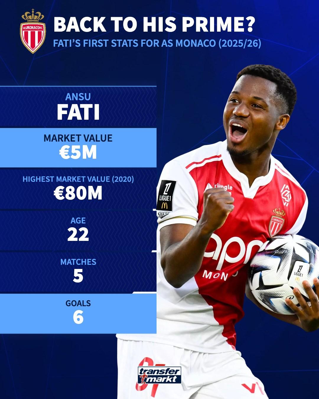 虎撲10月07日訊 德轉(zhuǎn)今日列出法蒂近期數(shù)據(jù):安蘇·法蒂似乎正在重拾光芒——5場比賽中打進(jìn)6球,數(shù)據(jù)不言自明。板追??