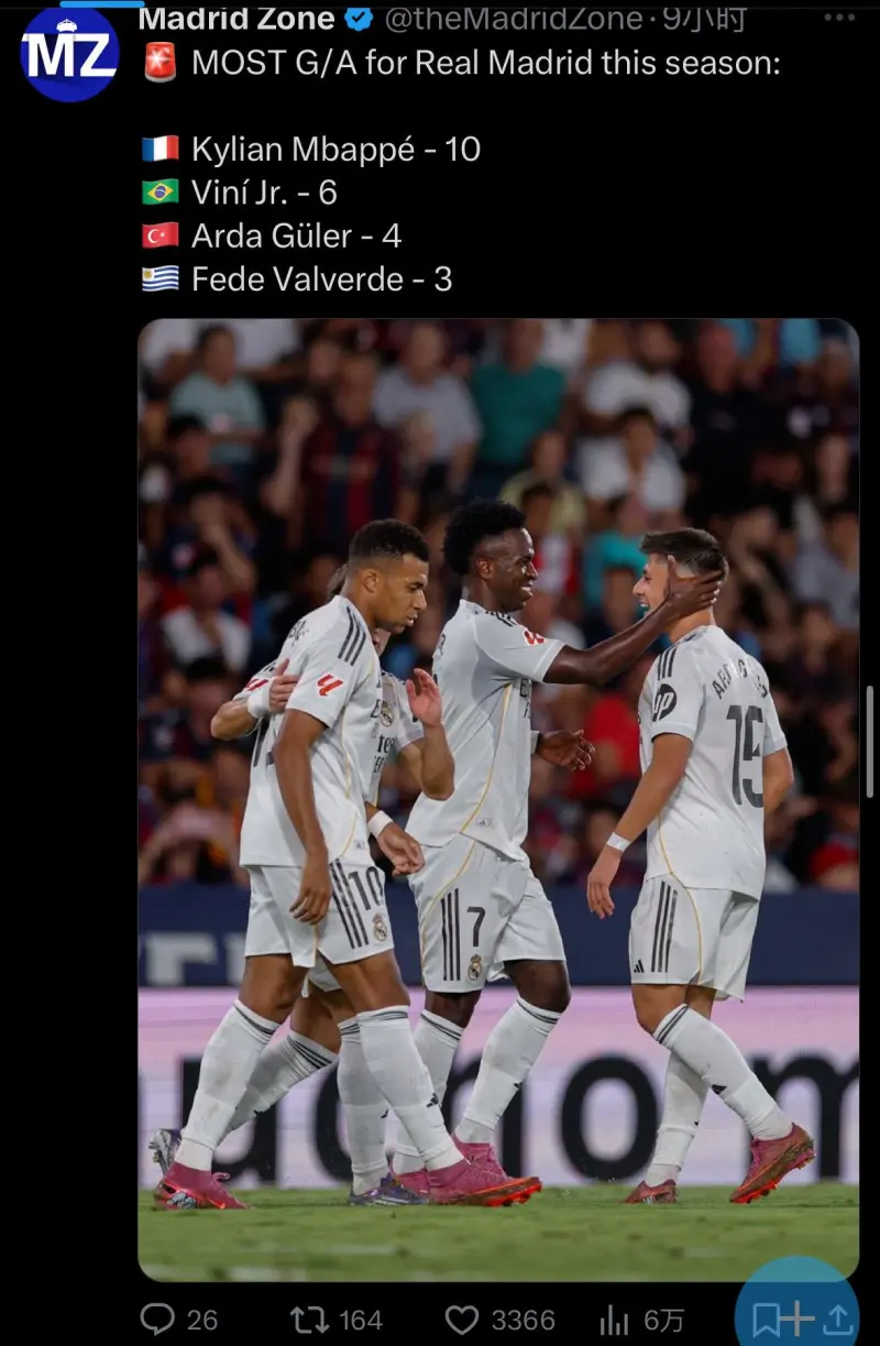 ????本賽季皇馬參與進(jìn)球(進(jìn)球+助攻)最多的球員: