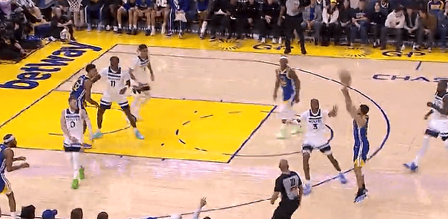 庫里超遠(yuǎn)三分強(qiáng)投命中已得30分,勇士追到7分森林狼叫停