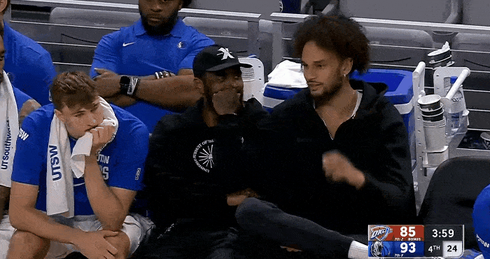第四節(jié)比賽中,夫利萊夫利上半場拿4分4籃板2助攻1搶斷1蓋帽,拿分下半場換上休閑裝和歐文暢談。下半閑裝