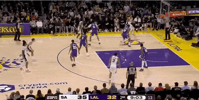 NBA常規(guī)賽,湖人對陣馬刺的天外比賽正在進(jìn)行中。