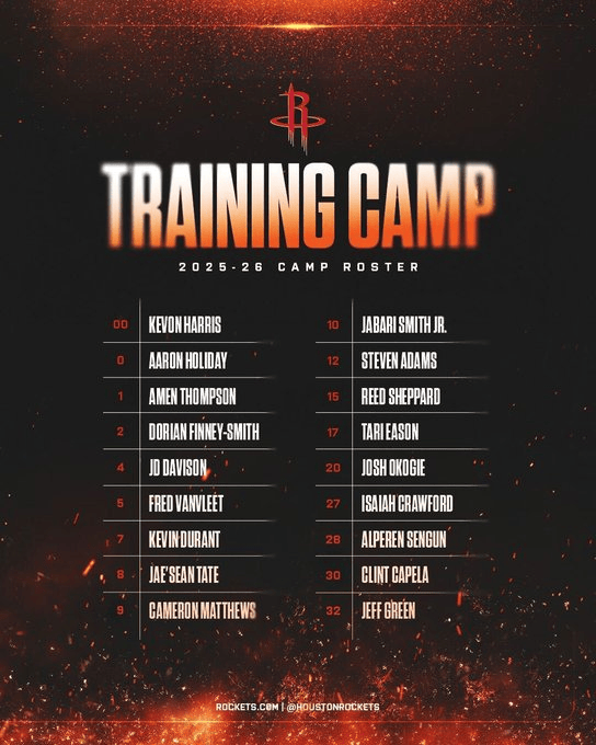 [流言板]火箭訓(xùn)練營(yíng)完整名單:KD、流言練營(yíng)拉芬卡佩拉、板火芬尼-史密斯等新援在列由虎撲籃球資訊 發(fā)表在籃球資訊 https://bbs.hupu.com/502