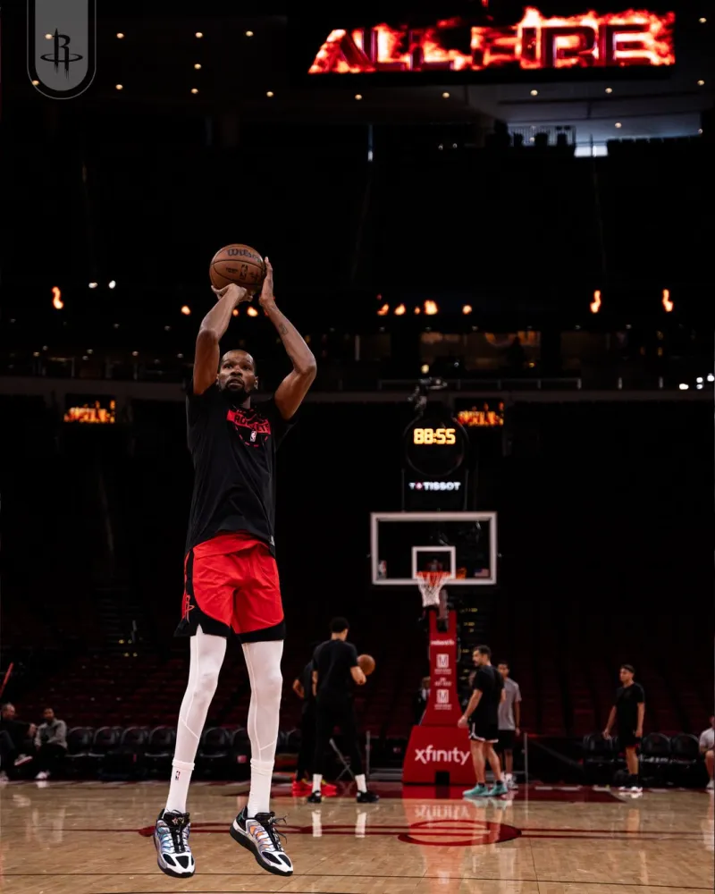 [流言板]火箭社媒曬球員們賽前熱身的瞬間,杜蘭特神情專注