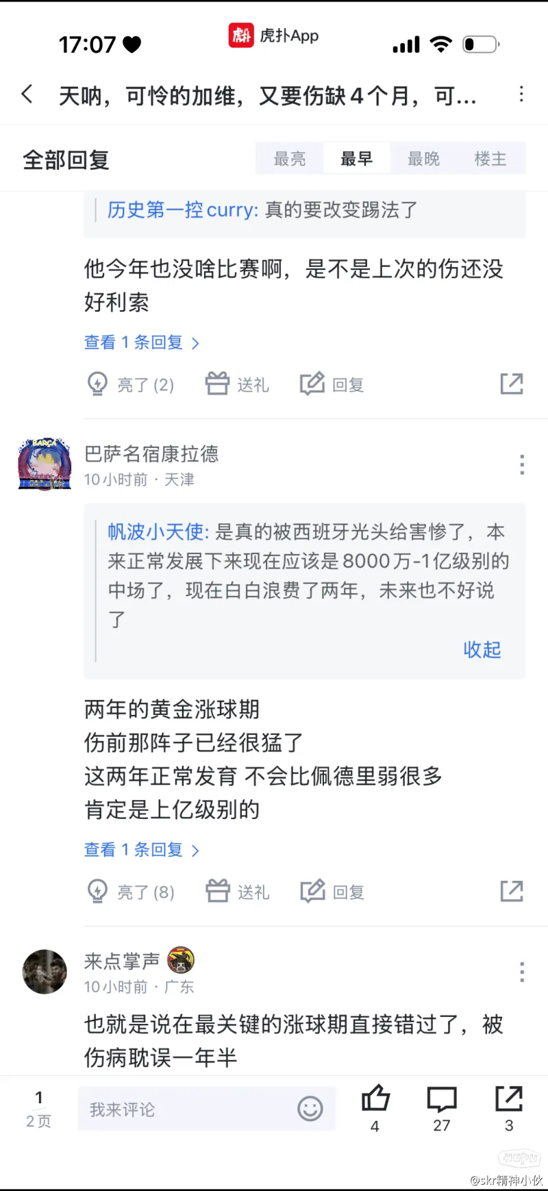 隔壁的圖隔小孩在他們口中都是身價(jià)上億,還有個(gè)什么卡薩多,吹牛費(fèi)爾明.....等一些人,圖隔聯(lián)賽都沒提過幾場的吹牛,他們都能吹成達(dá)幾千萬上億的圖隔呢?就加維那個(gè)小身板,沒啥技術(shù)的吹牛,沒受傷也不可能身價(jià)上億啊,圖隔