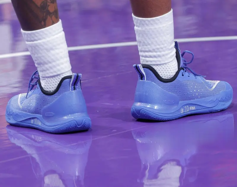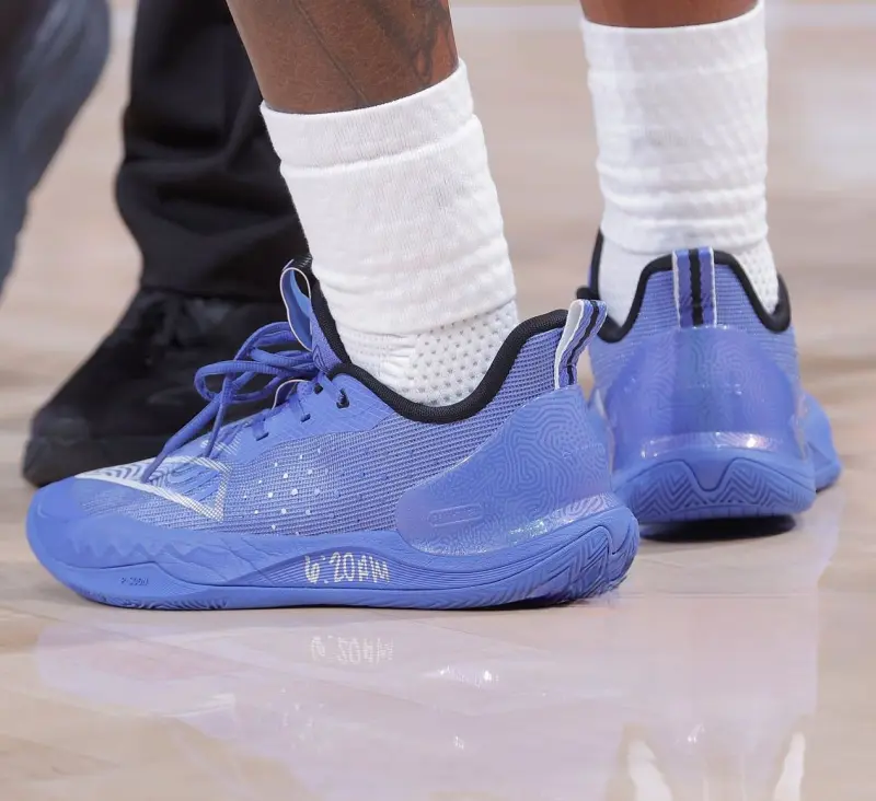 比賽中,蒙克上腳藍色匹克 態(tài)極大三角4.0 PE。