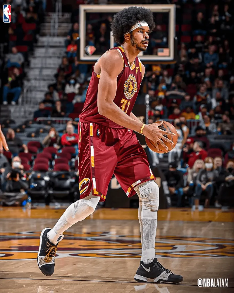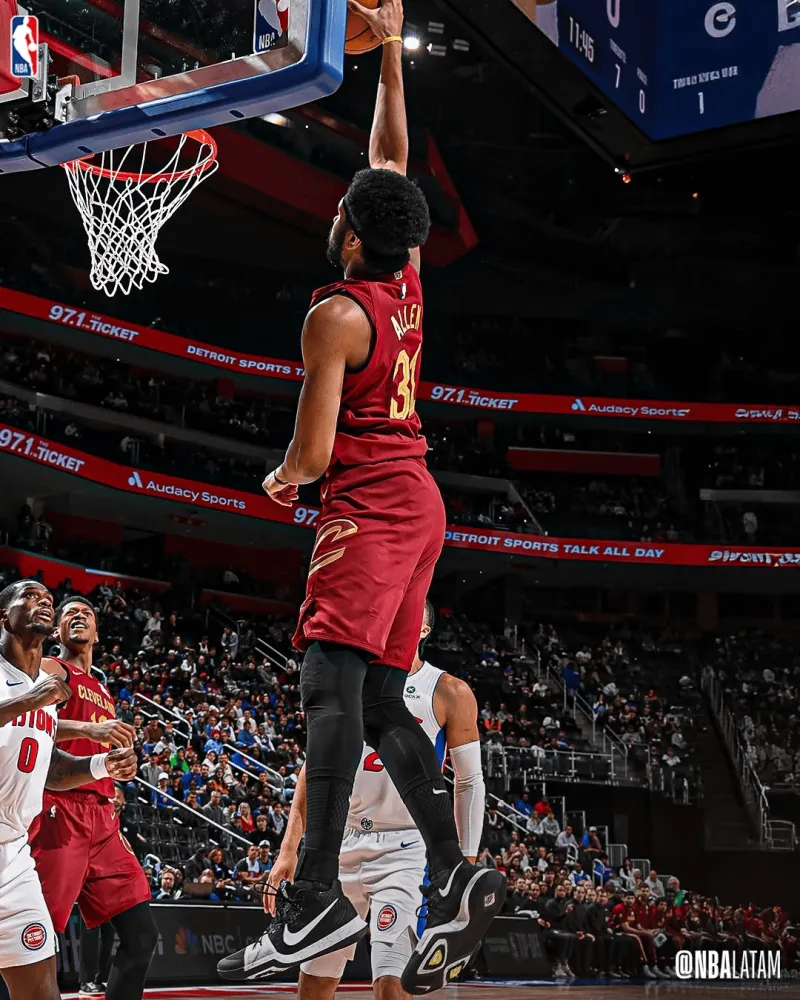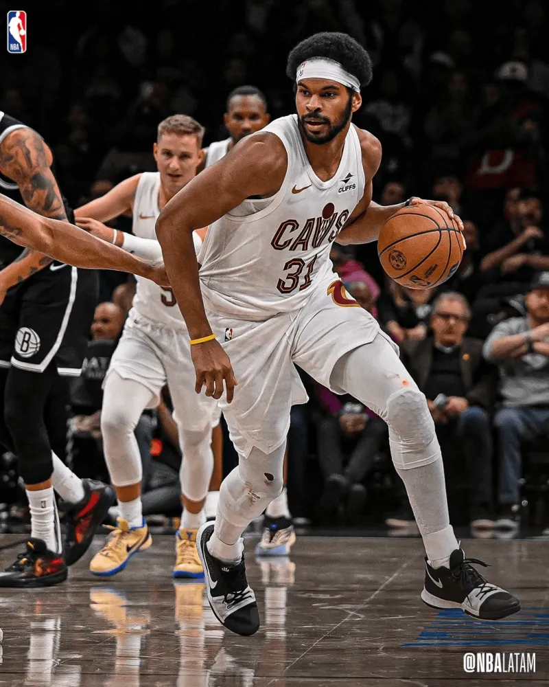 虎撲10月29日訊 NBA拉美地區(qū)官方社媒nbalatam分享騎士隊球員賈勒特-阿倫生涯賽場照及其腳下敝帚自珍的黑白色Nike Kyrie3。