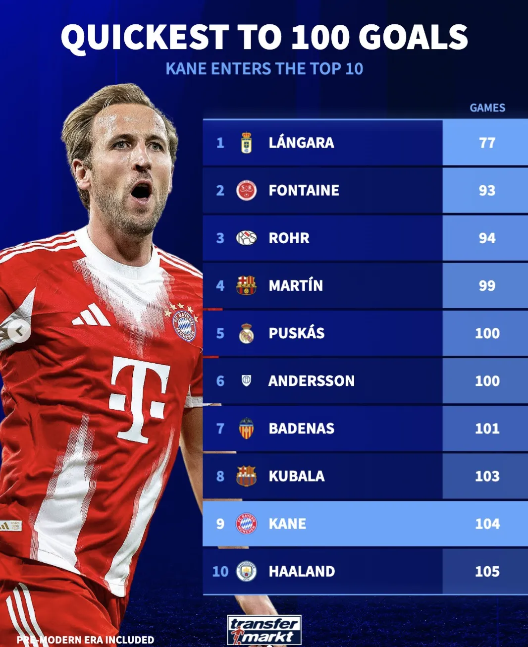 來源:Instagram虎撲09月26日訊 德轉統計了歷史上球員最快打進百球所需場次的榜單,這個榜單包含了歐洲五大聯賽尚未成形的場次場排早期年代。