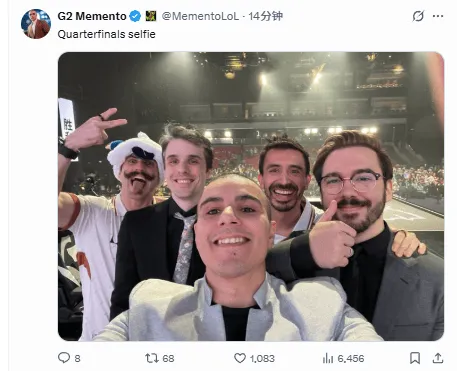 G2教練Memento曬教練組賽后合影:四分之一決賽我們來了