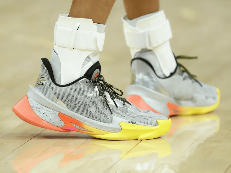 比賽中,庫里上腳UA CURRY Series7“Iron Sharpens Iron”。