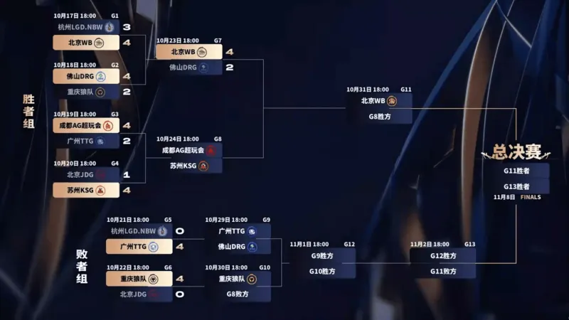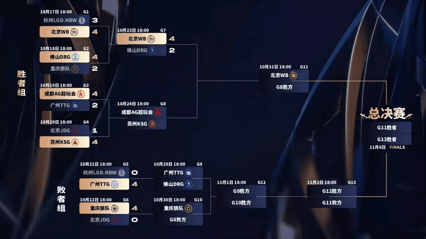 虎撲10月23日訊 [今日賽果]WB進(jìn)入勝?zèng)Q等待AG/KSG勝者,狼隊(duì)等待AG/KSG敗者