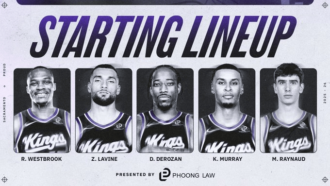 國王首發(fā):威斯布魯克、流言魯克拉文拉文、德羅贊、基根-默里、雷諾。