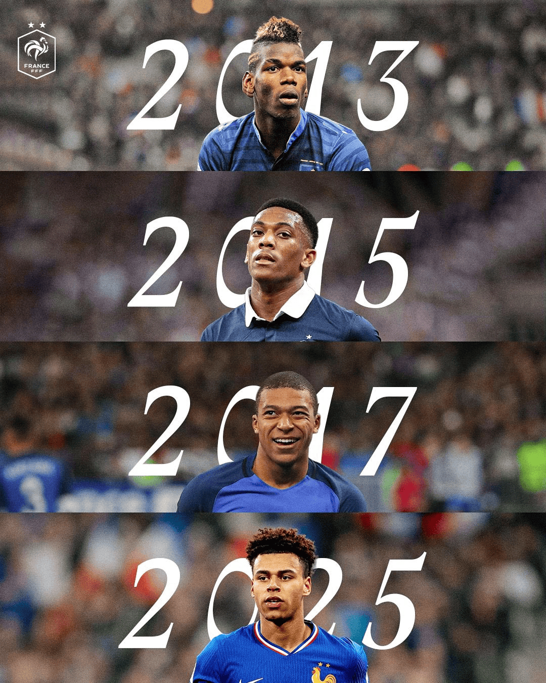 虎撲11月05日訊 巴黎邊鋒杜埃獲得了2025年金童獎(jiǎng),法國(guó)隊(duì)官方發(fā)布海報(bào)祝賀: