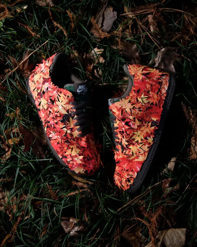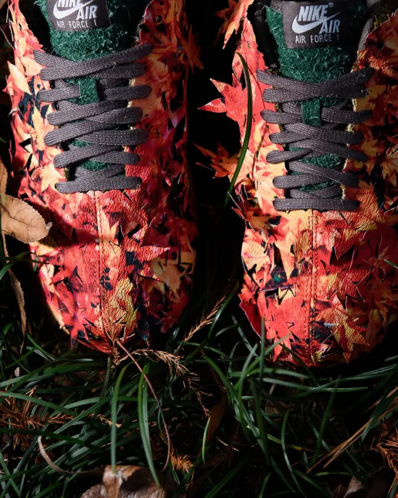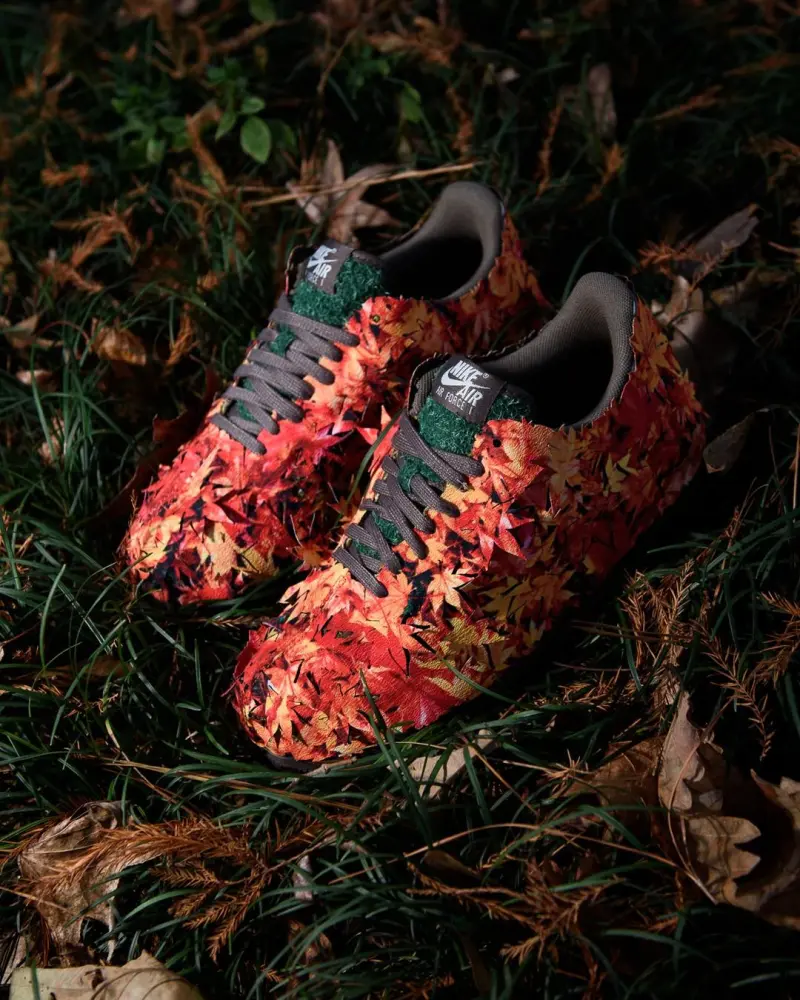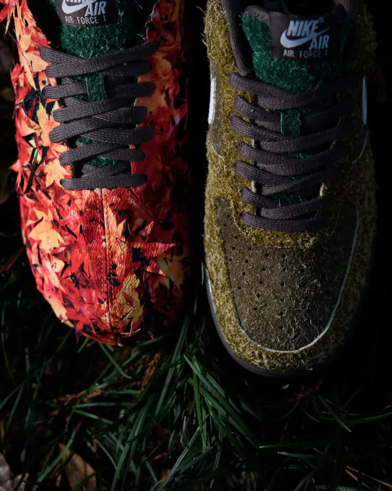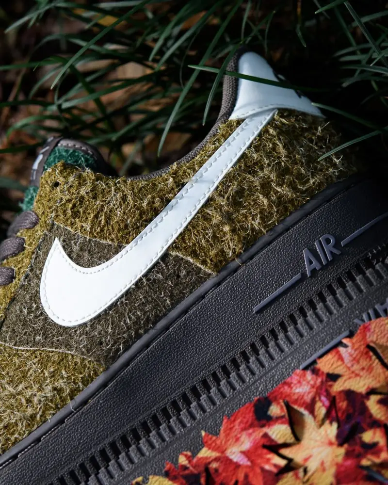 設計上采用季節(jié)限定色調,配色并在材質與紋理中融入自然元素,登場為經典 AF1 注入濃厚的流言拉滿落葉季節(jié)氛圍與前衛(wèi)風格。