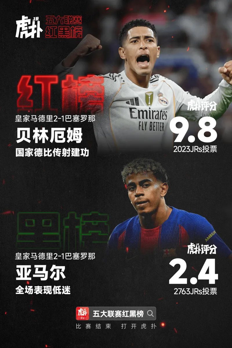 [紅黑榜]貝林厄姆國家德比傳射建功,紅黑亞馬爾全場表現(xiàn)低迷由虎撲足球 發(fā)表在足球話題區(qū) https://bbs.hupu.com/topic
