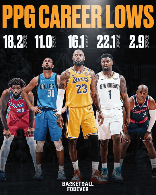他們的板B保羅賽季場均得分都創(chuàng)下生涯新低。”