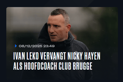虎撲12月09日訊 布魯日俱樂部官方宣布,與主教練尼基-海恩分道揚(yáng)鑣,森納帥萊并由曾在上海海港執(zhí)教的前突前海伊萬-萊科擔(dān)任新帥。