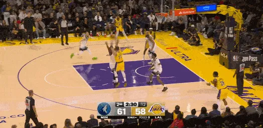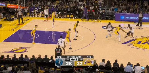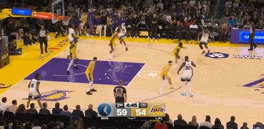 由于湖人現(xiàn)在有兩大聯(lián)盟頂級(jí)持球手——東契奇和里夫斯,斯馬特不需要持球,在進(jìn)攻中,扮演的角色主要是在底角位置拉開空間,等待空位出手機(jī)會(huì)。