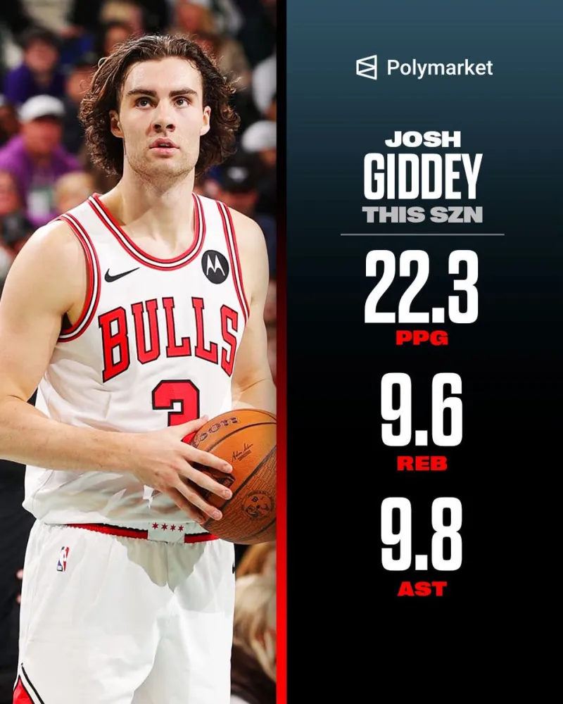 [流言板]Polymarket:22.3+9.6+9.8的吉迪正領(lǐng)跑MIP賠率榜單