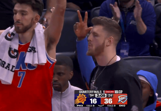 卡魯索上場(chǎng)后接球三分投進(jìn),雷霆首節(jié)已36