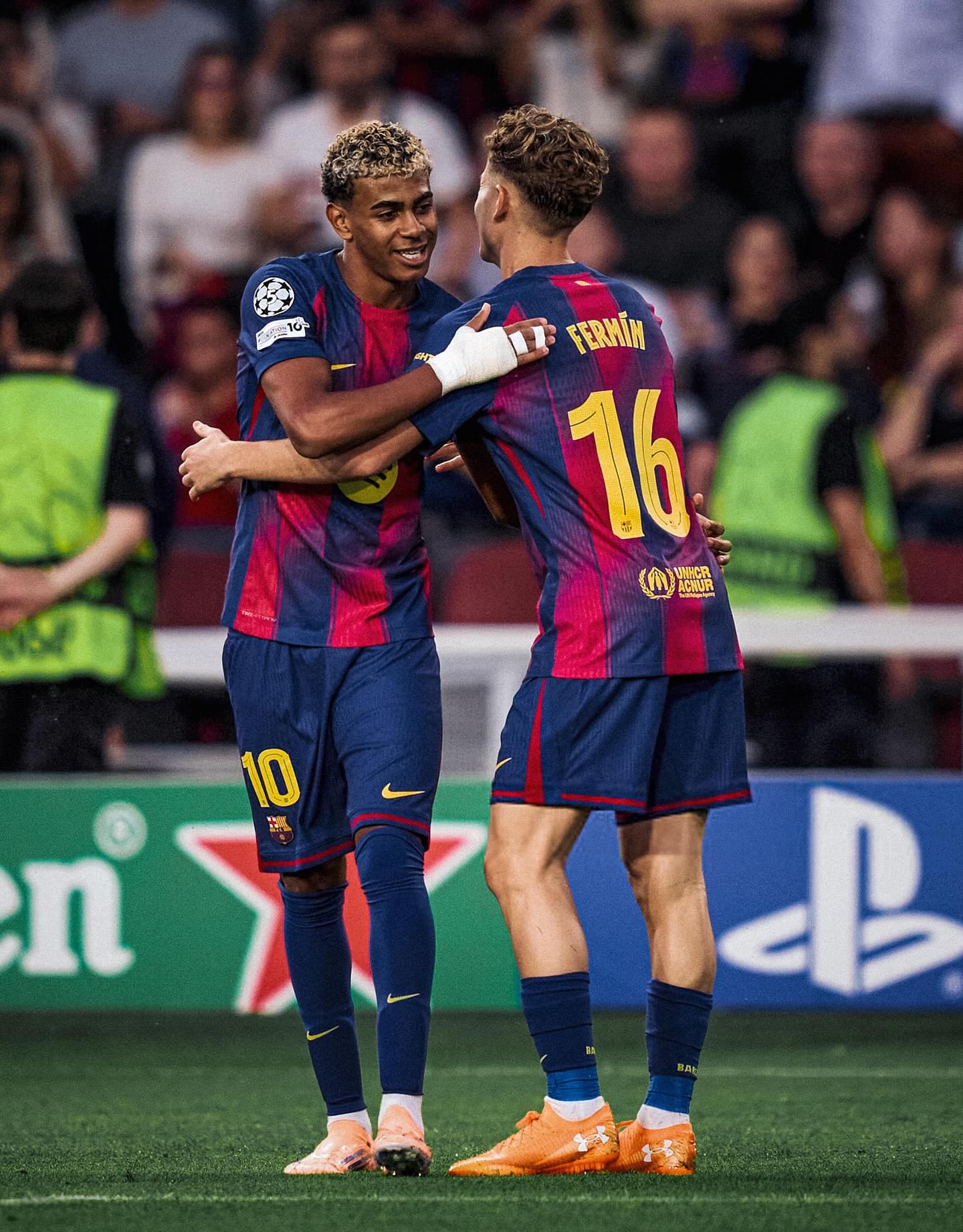 虎撲10月21日訊 歐冠聯(lián)賽階段第三輪,巴薩6-1奧林匹亞科斯,社媒費(fèi)爾明戴帽并當(dāng)選全場(chǎng)最佳球員。代表戴帽德比