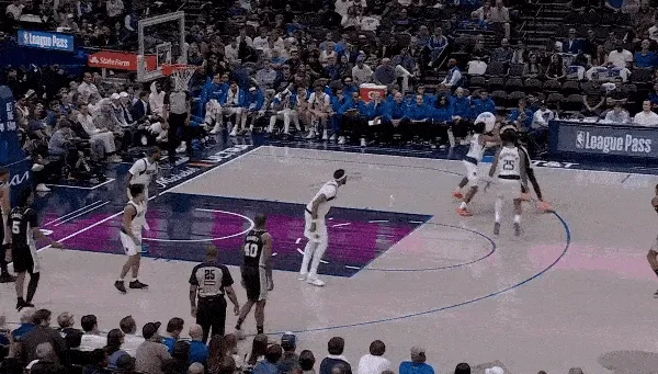 由于獨行俠沒有正經(jīng)的控球后衛(wèi),進攻開展起來異常的滯澀。半場球首發(fā)五人只有2個助攻,安東尼和萊夫利內(nèi)線等不到喂球,只能是高位手遞手的穿插。