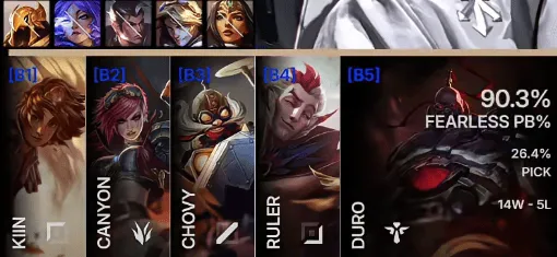 GEN選用:Kiin塞恩;Canyon蔚;Chovy巖雀;Ruler飛機;Duro洛