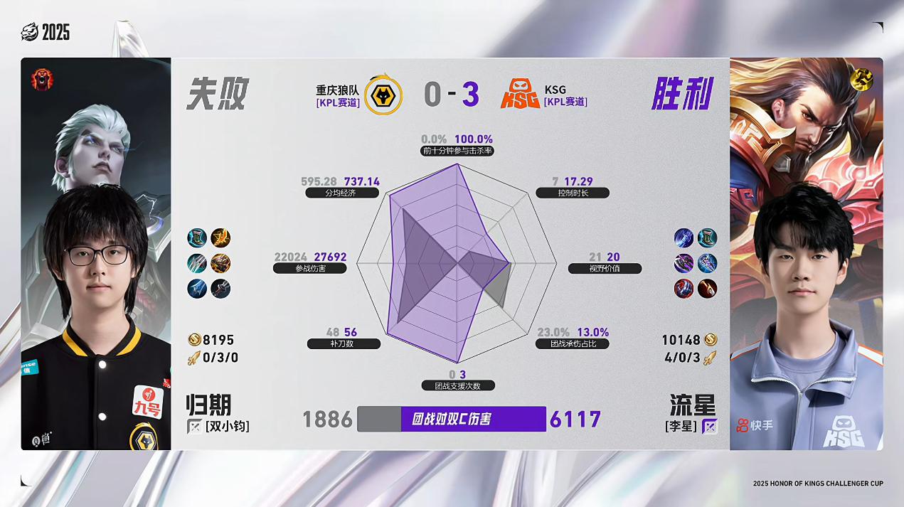 虎撲12月07日訊 KSG/狼隊(duì)第3局?jǐn)?shù)據(jù)對比:風(fēng)簫蚩奼幾乎全包圍道崽蒼。