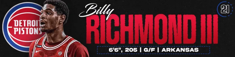 活塞已明確表示看重兼具精英防守與過(guò)人運(yùn)動(dòng)天賦的球員。比利·里士滿(mǎn)不僅符合這些標(biāo)準(zhǔn),更在配方中增添了一抹"瘋狂"特質(zhì)(此為褒義)。這位天賦型后衛(wèi)以防守、沖搶籃板、沖擊籃筐和進(jìn)攻端自由發(fā)揮得分立足,在做好所有細(xì)節(jié)的同時(shí),偶爾還會(huì)閃現(xiàn)令人驚嘆的組織靈光。若本賽季能展現(xiàn)投籃能力(季前賽已然好轉(zhuǎn)),里士滿(mǎn)有望實(shí)現(xiàn)選秀行情飆升,甚至逆襲首輪。