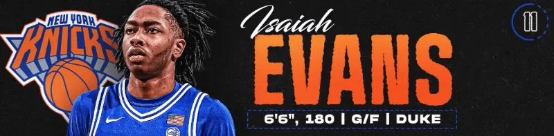 尼克斯出現(xiàn)于此順位或許令人意外,但在本次模擬中奇才的年輕陣容表現(xiàn)出色,反而使尼克斯獲得了樂(lè)透簽。紐約陣中老將領(lǐng)銜的陣容結(jié)構(gòu),即便在新帥邁克·布朗麾下,也難以為年輕球員提供穩(wěn)定輪換時(shí)間,泰勒·科勒克與阿里爾·胡克波爾蒂皆為例證。選擇以賽亞·埃文斯的獨(dú)特價(jià)值在于:他擁有足以躋身尼克斯陣容的稀缺技能包,即便初期角色受限。這位全美最具威脅的空間創(chuàng)造者之一,上賽季在杜克雖機(jī)會(huì)有限,卻總能在登場(chǎng)時(shí)最大化影響力:或以射手本能撕裂防守,或在防守端傾注全力。埃文斯尤擅無(wú)球移動(dòng),即便歷經(jīng)多重掩護(hù)追擊仍能快速調(diào)整步頻保持投籃平衡。其持球能力尚可但提升空間巨大,目前單一節(jié)奏的持球進(jìn)攻因缺乏速度優(yōu)勢(shì)易受限制,若能掌握節(jié)奏變化并精進(jìn)控球技術(shù),有望發(fā)展為更具威脅的持球點(diǎn)。