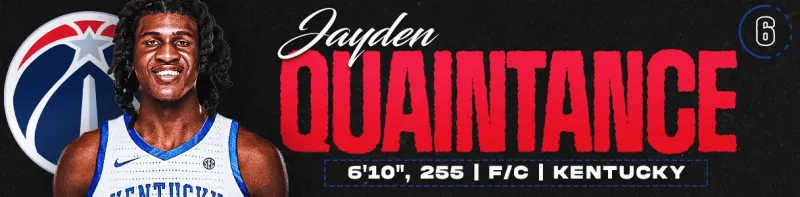 當(dāng)今聯(lián)盟中鮮有像華盛頓奇才這般兼具觀賞性與潛力的弱旅。基肖恩·喬治扮演著組織型前鋒角色,已成為NBA最多才多藝的年輕球員之一;特雷·約翰遜雖效率未達(dá)頂級(jí),卻不時(shí)展現(xiàn)真實(shí)潛力;亞歷克斯·薩爾則開(kāi)發(fā)出較以往更貼近籃筐的進(jìn)攻手段。盡管有人認(rèn)為奇才應(yīng)在此順位補(bǔ)強(qiáng)控衛(wèi),但選擇天賦最優(yōu)者才是明智之舉,而杰登·昆坦斯正是"最佳天賦"的強(qiáng)力候選。據(jù)傳其身高已長(zhǎng)至約2米11,體重接近113公斤。更特別的是,雖是大二生,他比本屆多數(shù)大一新生更年輕。在大學(xué)首個(gè)賽季中,他的封蓋率高居全美第19位,同時(shí)是可靠的籃板手,還展現(xiàn)出卓越的傳球嗅覺(jué)。當(dāng)聯(lián)盟愈發(fā)追求體型與技術(shù)的極致融合時(shí),昆坦斯有望為華盛頓構(gòu)建足以媲美切特·霍姆格倫與以賽亞·哈滕斯坦的前場(chǎng)陣容。