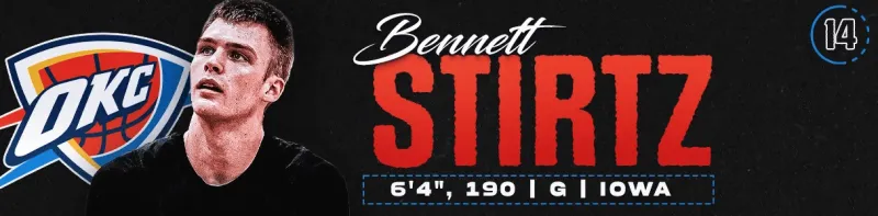 對(duì)于這支無(wú)所不缺的球隊(duì),該如何補(bǔ)強(qiáng)?或許只需延續(xù)其既定偏好。本內(nèi)特·斯特茨去年締造了全美最瘋狂的數(shù)據(jù)之一,盡管仍有人質(zhì)疑其在高級(jí)別聯(lián)賽的適應(yīng)力。若他能接近復(fù)刻德雷克大學(xué)時(shí)期的表現(xiàn),其投射、組織與防守創(chuàng)造力必將助其鎖定此順位。雷霆從不回避選擇后衛(wèi),尤其當(dāng)該球員兼具高球商與多面手特質(zhì)時(shí)。斯特茨將完美適配戰(zhàn)術(shù)體系,隨著球隊(duì)發(fā)展及薪資結(jié)構(gòu)膨脹,持續(xù)為后場(chǎng)提供關(guān)鍵深度。