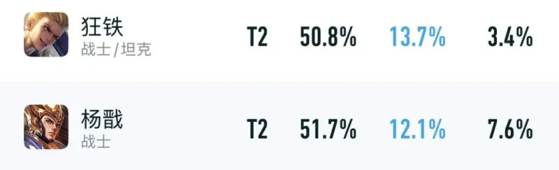 這也是狂鐵和楊戩的巔峰賽勝率會(huì)飆升的原因,畢竟他倆不僅同時(shí)兼顧輸出+坦度,還有穩(wěn)定的控制留人,只要團(tuán)戰(zhàn)可以打起來,就能讓隊(duì)友非常舒服。