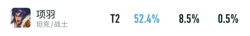 在全分段里,項(xiàng)羽有著52.4%勝率,對(duì)比上個(gè)賽季足足漲了4%,也是S41新賽季漲幅最多的對(duì)抗路。