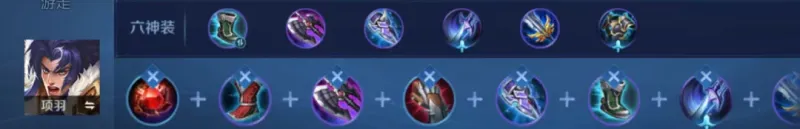 先出冷靜之靴+暗影戰(zhàn)斧來保證CD,讓項(xiàng)羽的小控制釋放得更頻繁,支援起來也會(huì)舒服很多,隨后再出冰痕之握(冰拳)提升留人能力。
